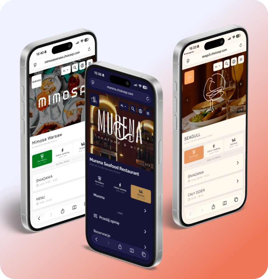 System pozwala stworzyć i skonfigurować stronę internetową dla Twojej restauracji z spersonalizowaną stroną powitalną i narzędziami marketingowymi (SEO, integracja z kontami reklamowymi i nie tylko), w tym menu, możliwością przyjmowania zamówień na dostawę i odbiór osobisty, a także funkcją rezerwacji stolików. Twoi goście mogą przeglądać menu, składać zamówienia i rezerwować stoliki bezpośrednio przez stronę.