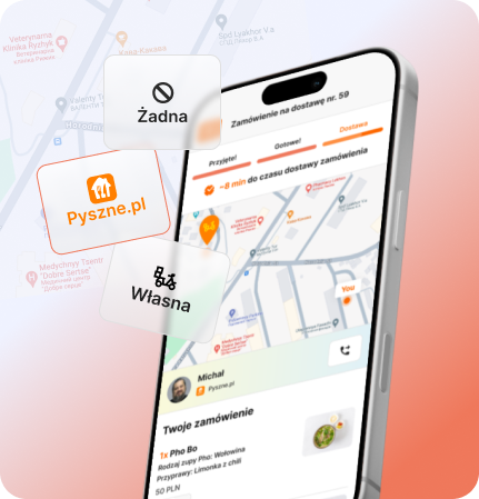 Możesz realizować dostawy własnymi kurierami albo podłączyć integracje z firmami kurierskimi (np. Wolt Drive lub Glovo On-Demand). Dostępne w taryfach Smart i Pro.